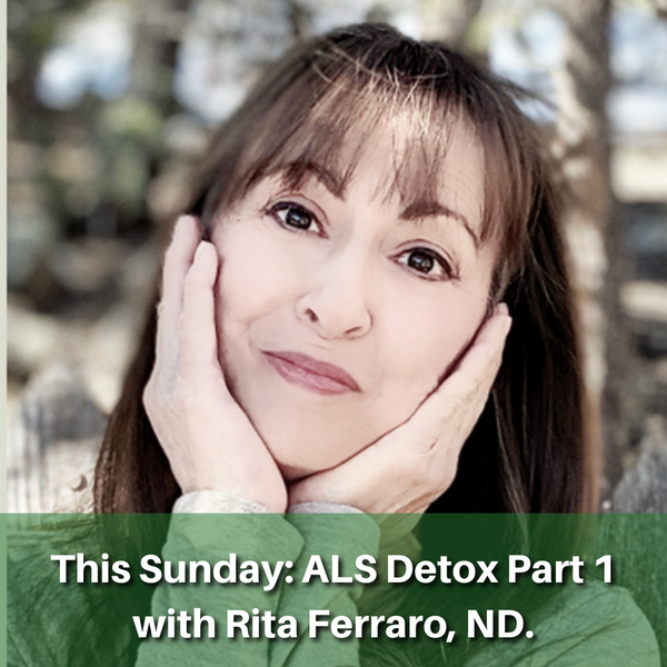 PT, 2pm ET, 8pm Paris/Europe: ALS Detox Part 1 with Dr. Rita Ferraro, ND. ALS Is your Body Ready to Detoxify? Dr. Ferraro discusses clearing the detox pathways, healing the liver, kidneys, assessing if you are ready for detox and methods of detoxification.Rita suffered from chronic diseases, weighed only 69lbs, and through research and education found the root cause.