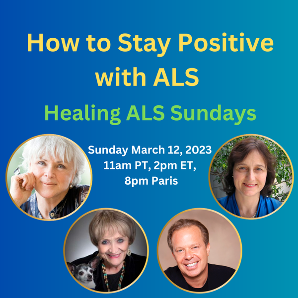 Sunday March 12: 11am PT, 2pm ET, 7pm Paris. How to Stay Positive with ALS. Your thoughts affect your immune system and your ability to heal. Learn tools to overcome fear, overcome unforgiveness, and stay in a positive, happy state of mind even