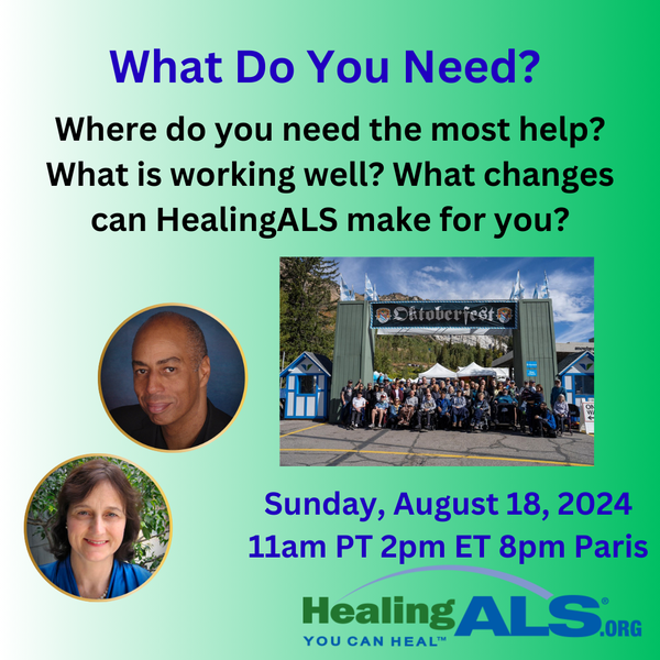 Our chance to listen to you. Where do you need more support from Healing ALS? What can we do better? 11amPT, 2pmET, 8pmParis. Join here.