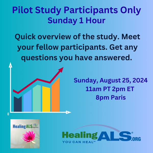 Thursday August 22: All PALS and CALS, join us for the new format of 47 Steps to Healing ALS.This week Step 31 Detox Mold/Mycotoxins. Learn about emotional healing, staying positive and cover one step per week of the 47 Steps. Be part of this exceptional group of PALS dedicated and determined to slow, stop and reverse ALS while living a healthy and enjoyable life no matter what their current condition.