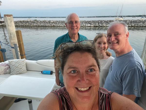 Jennifer (front, Healing ALS volunteer) with her husband Chris (behind Jennifer, diagnosed ALS 2020) had a wonderful visit on their boat with Coco Newton (Healing ALS Medical Advisory Team) and her husband Roger. Chris is a Captain and worked for many years
