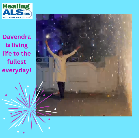 Davendra was diagnosed with ALS in 2019. This video was taken in 2024. (See Davendra's video on Facebook and Instagram) Help us help others with ALS. Double your donation only through Friday,November 4. Click Here to Donate