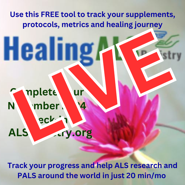 ALS Registry Zoom Party! Ask questions, share information. Fill in your registry questions with the group! Get your supplements, doctors, and protocols added live. Register Here |