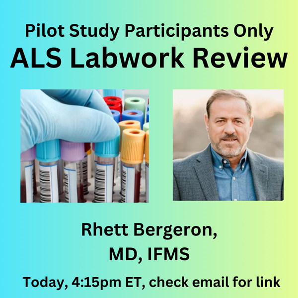 | Today at 1pm PT, 4:15pm ET, 10:15pm Paris, 8:15am Aus . Pilot Study Participants Only: Review of PALS' labwork by Rhett Bergeron, MD, IFMS. Don't miss how to understand