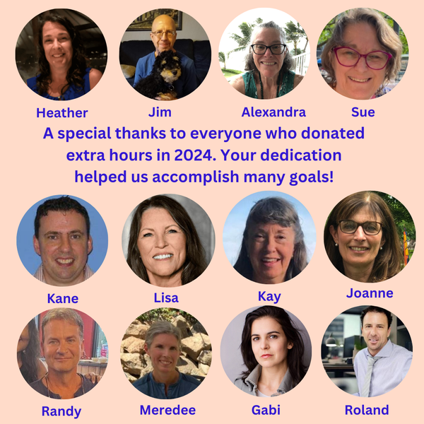 Happy 2025! A great year for Healing! Please read personal message from Scott and Tish at the bottom of this email. We especially want to thank all of our volunteers. Not all volunteers are listed yet we appreciate every one of you. Many of you