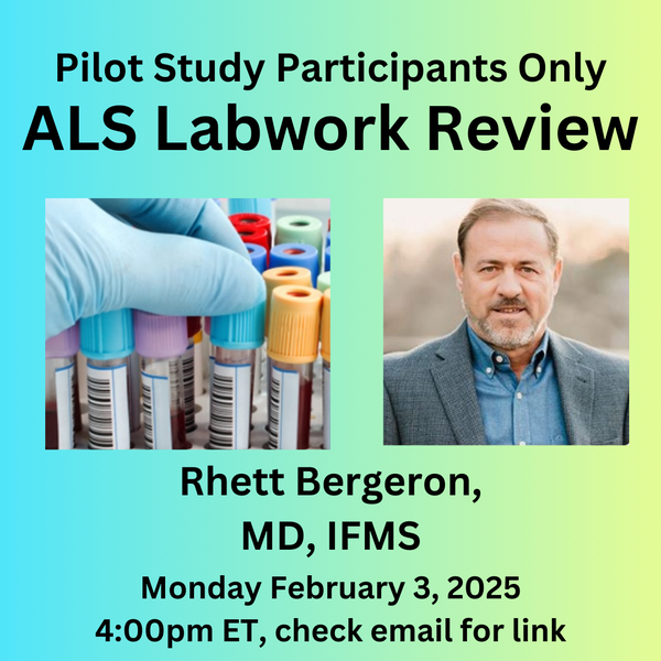 February 4, 11:00am PT, 2:00pm ET, 8:00pm Paris ALS Registry Zoom Party! Ask questions, share information. Fill in your registry questions with the group! Get your supplements, doctors, and protocols added live. Register Here |