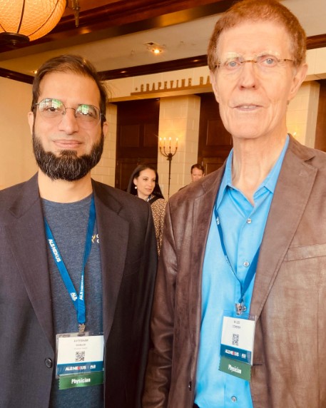 Dr. Cowden talking with Dr. Khalid about treatment of ALS patients. |