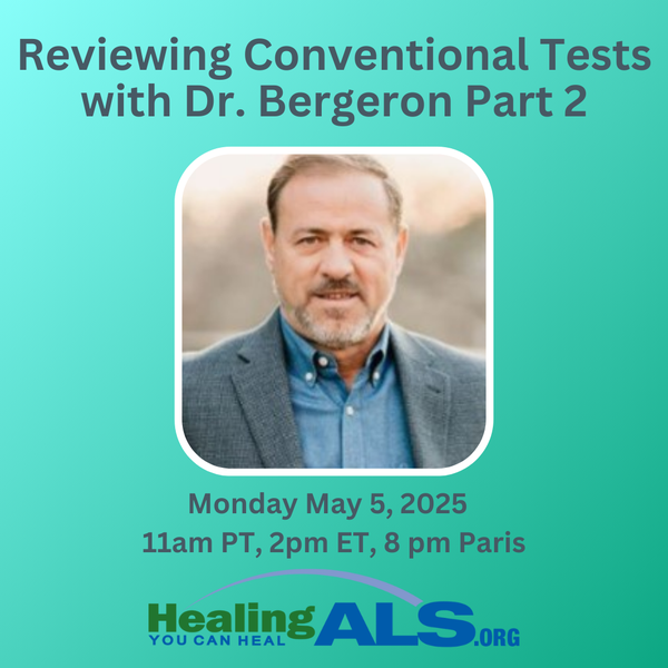 Monday May 5: Healing ALS Monday Expert Talk: 10am PT, 1pm ET, 7 pm Paris. Reviewing Conventional Tests with Dr. Bergeron Part 2