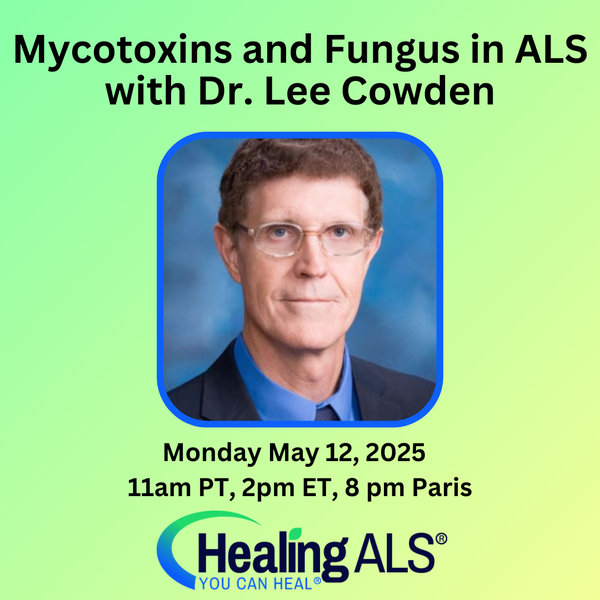 | | Monday May 12: Healing ALS Monday Expert Talk: 10am PT, 1pm ET, 7 pm Paris. Mycotoxins and Fungus in ALS with Dr. Lee Cowden Mycotoxins are one of the major contributing factors of ALSand fast-progressing ALS symptoms.