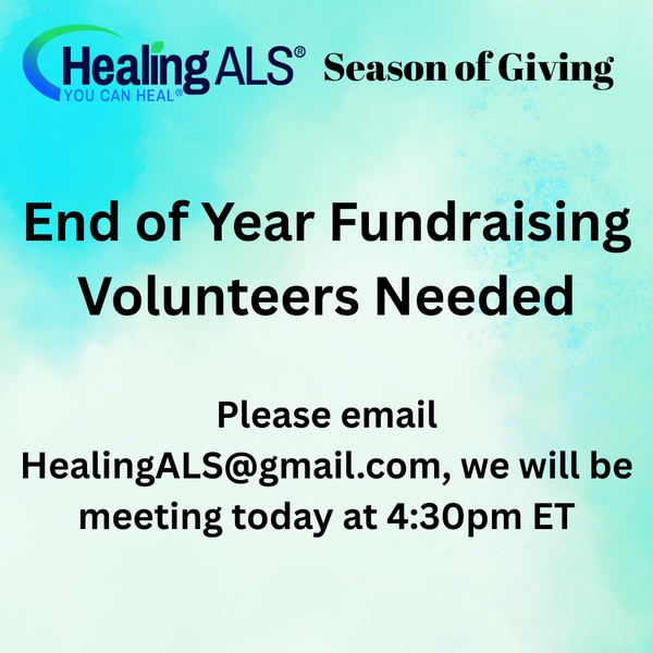 Do you have experience in fundraising or an interest in helping Healing ALS with end of year fundraising? Please email HealingALS@gmail.com so we can send you the link for the call at 4:30pm ET today, Monday.