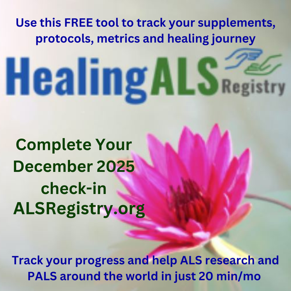 Wednesdays: Healing Choices with ALS Reversal Lazarus Ember. Lazarus was diagnosed with ALS in 2018. His ALSFRS score went from a low of 27 to 45. He offers free classes and monthly subscriptions.