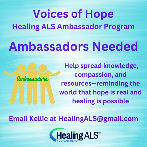 See below for information on the Voices of Hope Healing ALS Ambassador Program, we need you!