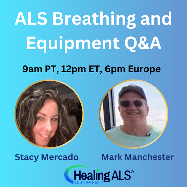 Thursday: ALS Breathing & Equipment Q&A: 9am PT, 12pm ET, 6pm Europe. Stacy Mercado, CRT, Respiratory Therapist, and Mark Manchester, 3 years on a trach and now
