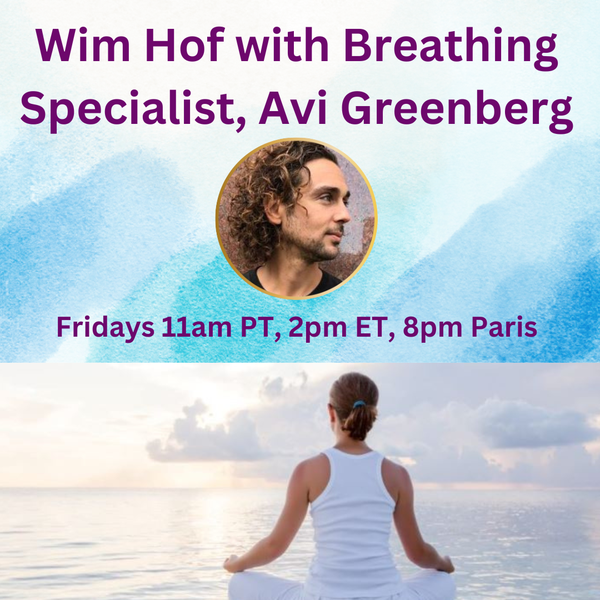 Most Fridays,Wim Hof with Avi Greenberg, breathing specialist. Avi is experienced with the use of breathing to calm the body to a parasympathetic state, which promotes healing. Click here to Join. No need to register.