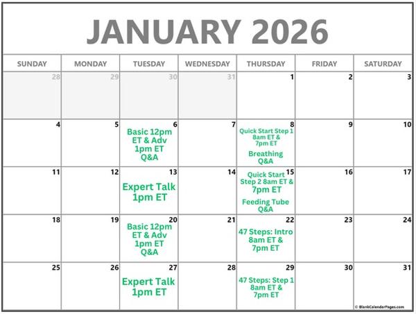 Thursday 8am ET & 7pm ET: 47 Steps: This week: Introduction. Preparation for 47 Steps to Healing which will recommence on January 22. Join one of two sessions on Thursdays.