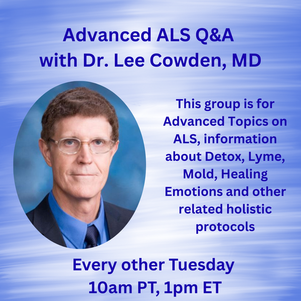 Tuesday 10am PT, 1pm ET, 7pm Paris: Advanced ALS Diet & Supplement Q&A. Dr. Lee Cowden, MD. Dr. Cowden has practiced integrative and functional medicine for 40 years
