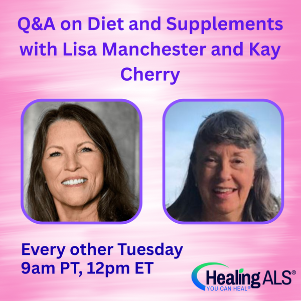 Tuesday 9am PT, 12pm ET, 6pm Paris: Q&A on ALS Diet, Supplements & Care with Lisa Manchester and Kay Cherry.